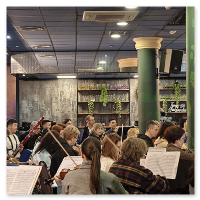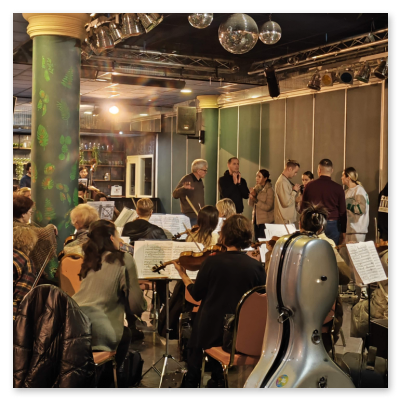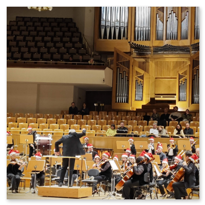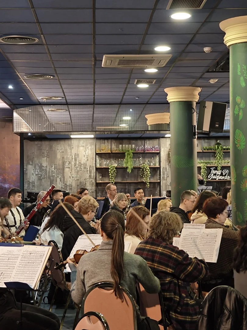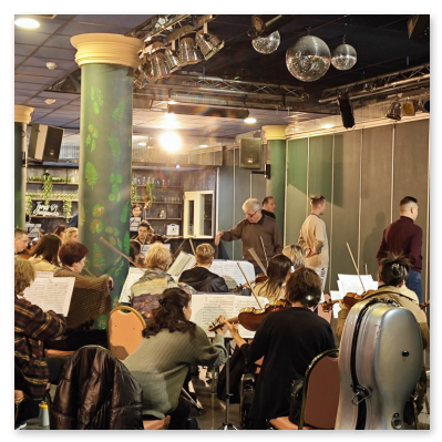 Una orquesta de mas de 70 músicos de diferentes nacionalidades ensayando en nuestras instalaciones.